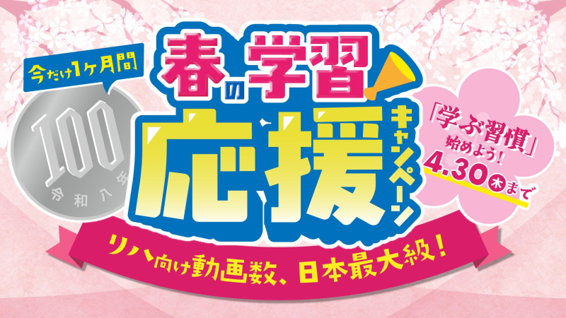 春から新しい環境を迎えるリハスタッフの皆さまへ。 リハノメでは3月15日(日)~4月30日(月)まで、「春キャンペーン」を開催いたします。 【初回限定】980円(税込)のお試しプランが、 なんと期間限定で...