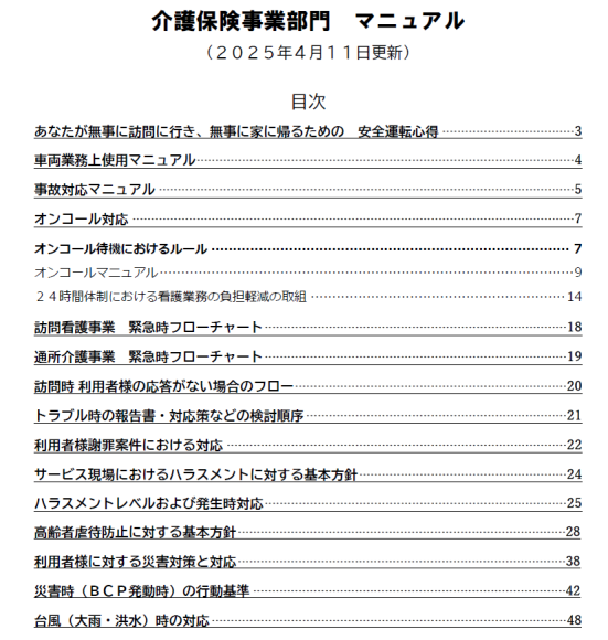 gene社員が1人1冊携帯している、訪問看護+通所介護のマニュアルです
